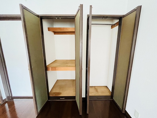 6帖のお部屋が2つ、それぞれに大きめの収納を完備。衣類や季節もの、書類や道具もすっきり片付きます。シンプルに、でもしっかりと。無駄のない設計が、毎日を心地よくしてくれます。